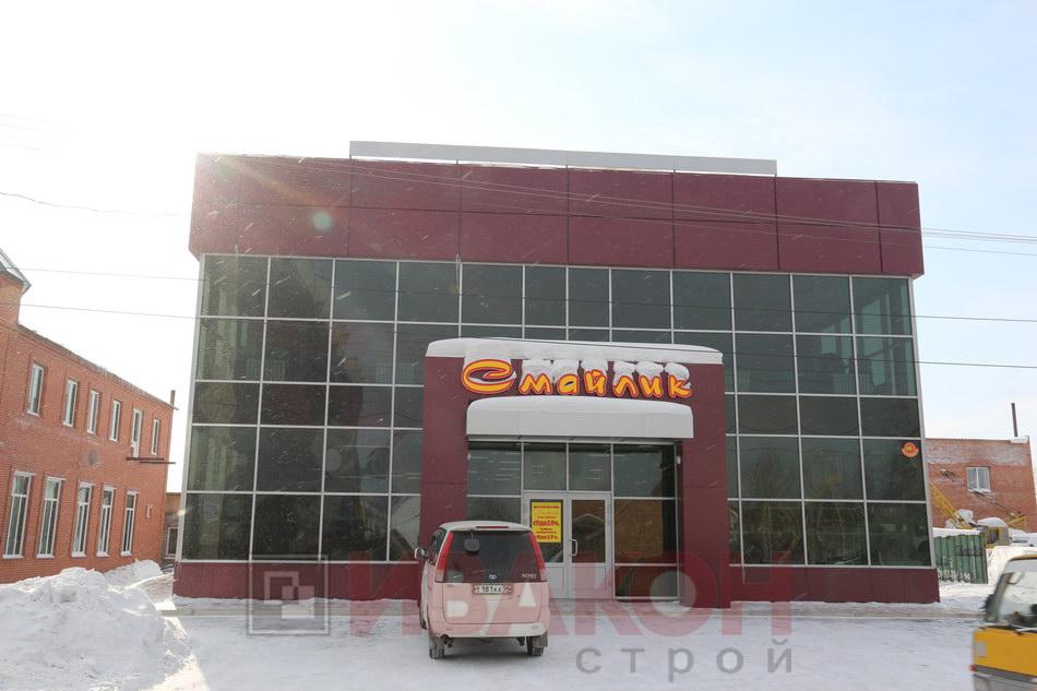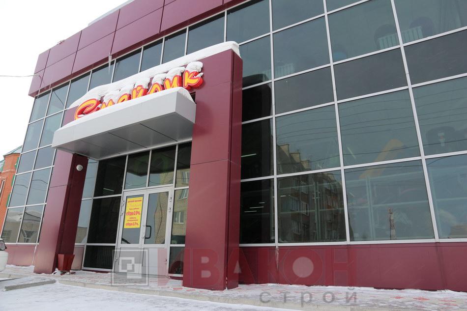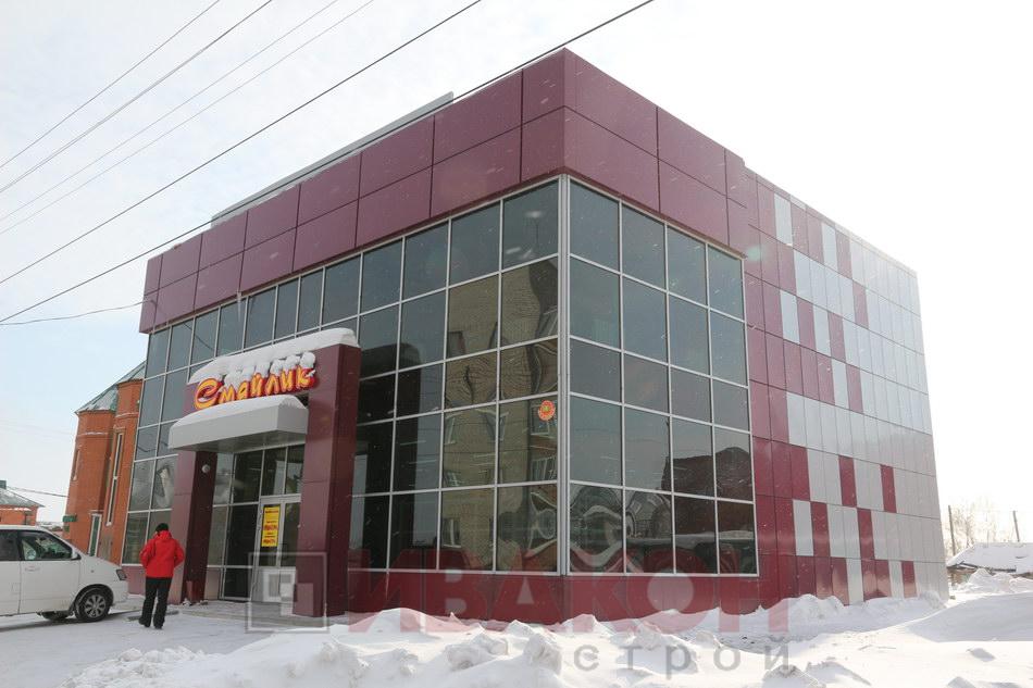- Стены: выполнены из сендвич-панелей с базальтовым утеплителем 100 мм, отделка фасадной стены алюминиевым композитом "алюкобонд", отделка боковых стен металло-полимерными кассетами.